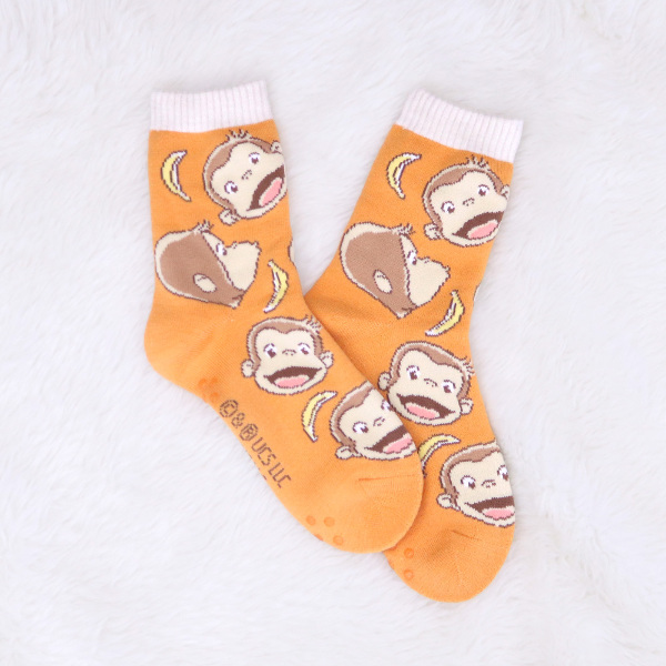 大人気キャラクター「おさるのジョージ」から、暖かいルームソックスが登場。ジョージとバナナ柄がかわいい! 総パイルで暖かく、滑り止め付きで機能的な1足です。