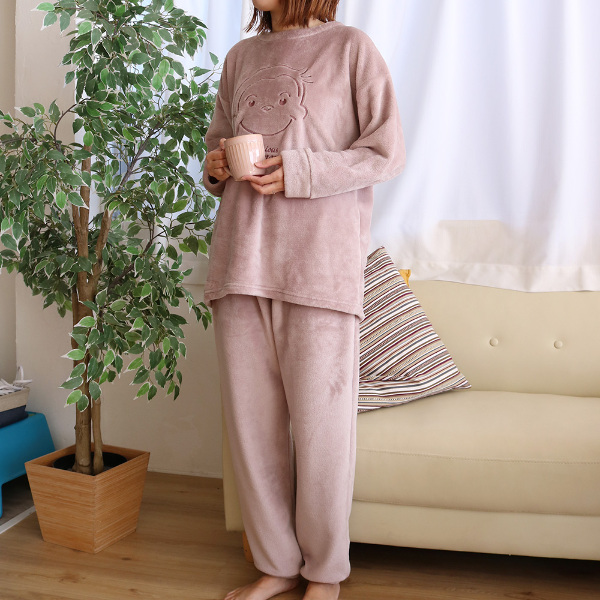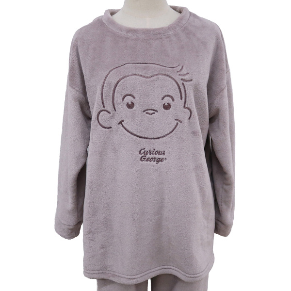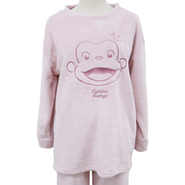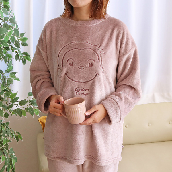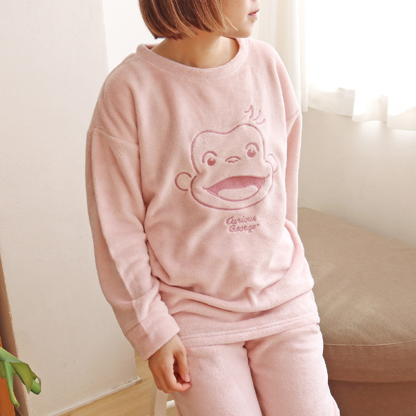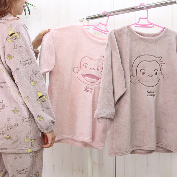 おさるのジョージの冬に着たいおすすめルームウェアが登場です。ピンクとブラウンの2色展開で、胸に大きくジョージの刺繍入り♪カラーによって表情が違います。