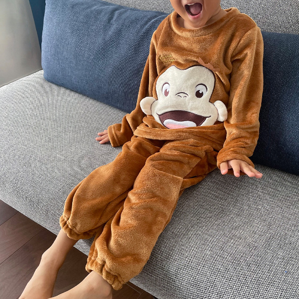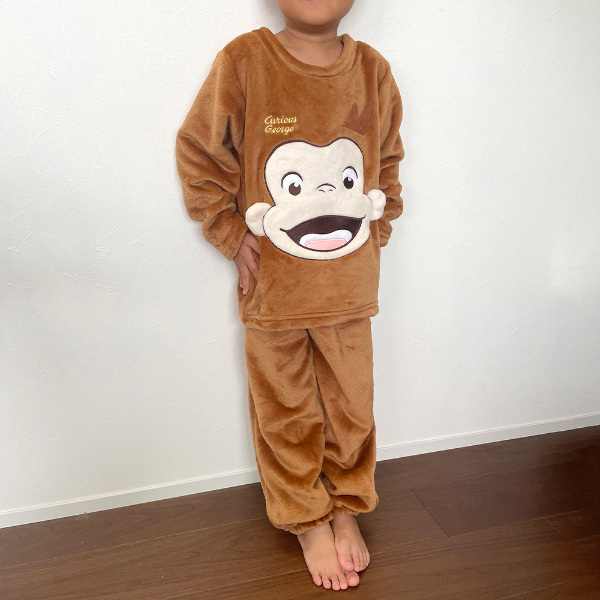 おさるのジョージなりきりパジャマシリーズより、ジョージのキッズ用ルームウェアが新登場!寒い冬でも暖かなフランネルフリース素材を使用し、保温性も抜群♪