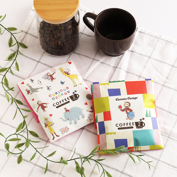 可愛いジョージのイラストがパッケージに描かれたドリップバッグコーヒー。8g×2包入り。