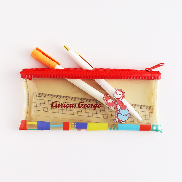 可愛いジョージのイラストが描かれたPVCポーチです。中身が透けて見えるので取り出しやすいです。