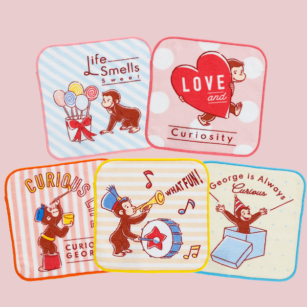 ジョージがかわいらしくデザインされたミニタオルの5枚組になります。違ったデザインでその日の気分で選んで使用いただけます!