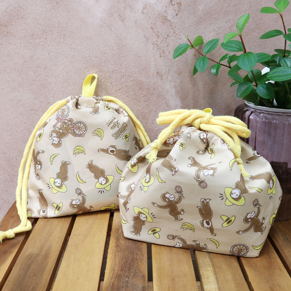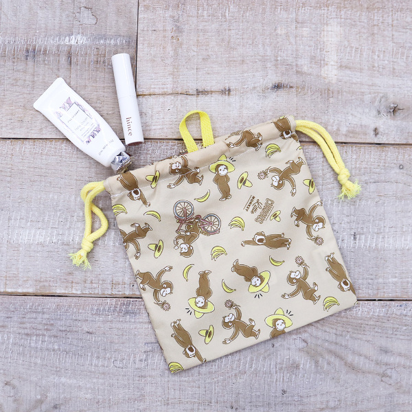 ジョージのいろいろな表情が楽しい総柄デザインの巾着です。カバンの中の整理に大活躍です◎