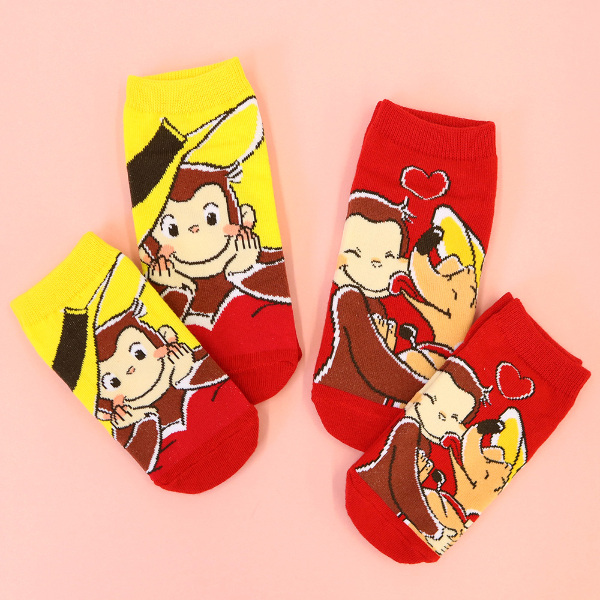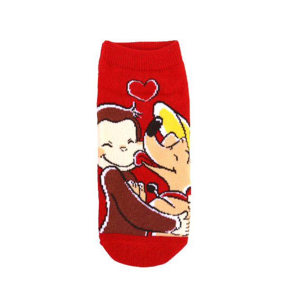 <おさるのジョージ85周年>レディースサイズの靴下です。足の甲の部分にイラストがきます。色味が鮮やかです。