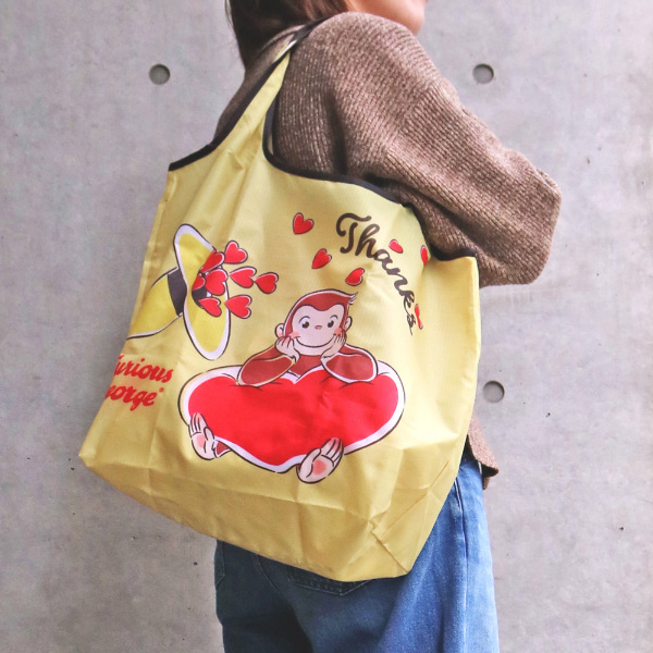 <おさるのジョージ85周年>お買い物の必須品であるショッピングバッグです。使わないときはくるくるまとめて小さく収納ができます◎