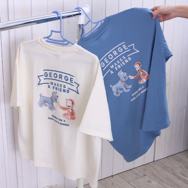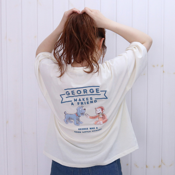 バックに大きくジョージをプリントしたカジュアル感満載のデザイン。着心地の良い生地感で暑い真夏でも涼しく着用いただけます◎
