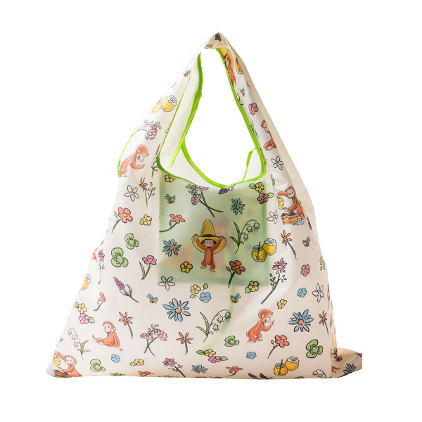 様々な表情をしたジョージが可愛らしいエコバッグ。大きめサイズなのでたっぷり収納でき、コンパクトにたためるので持ち運びにも便利です。