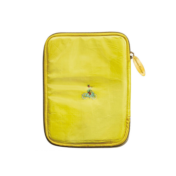 クラフト素材の上にPVC素材を被せ、カラフルなジョージをのせたデザイン。